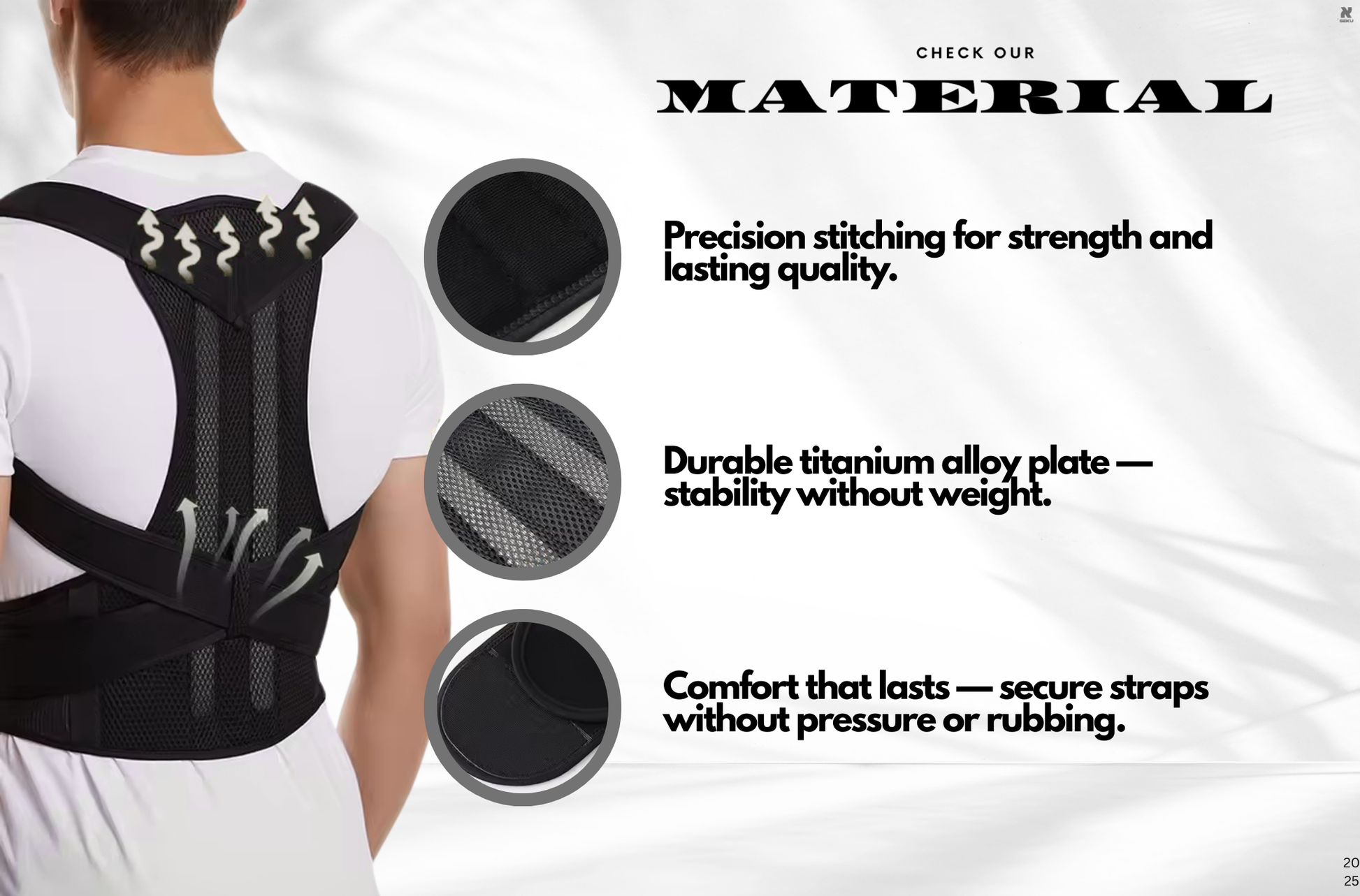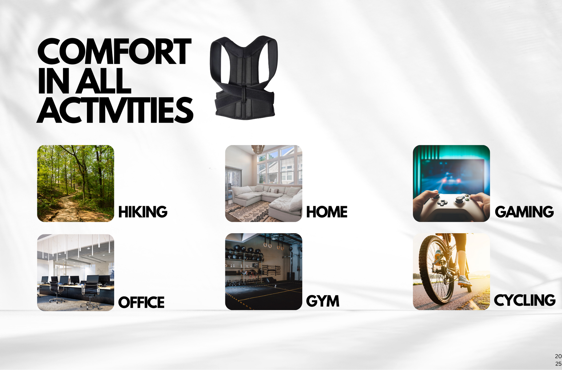 For long hours at a desk, on the phone, or under daily stress — the Rise & Align Brace restores your natural alignment. Stand tall, protect your back, and project confidence.