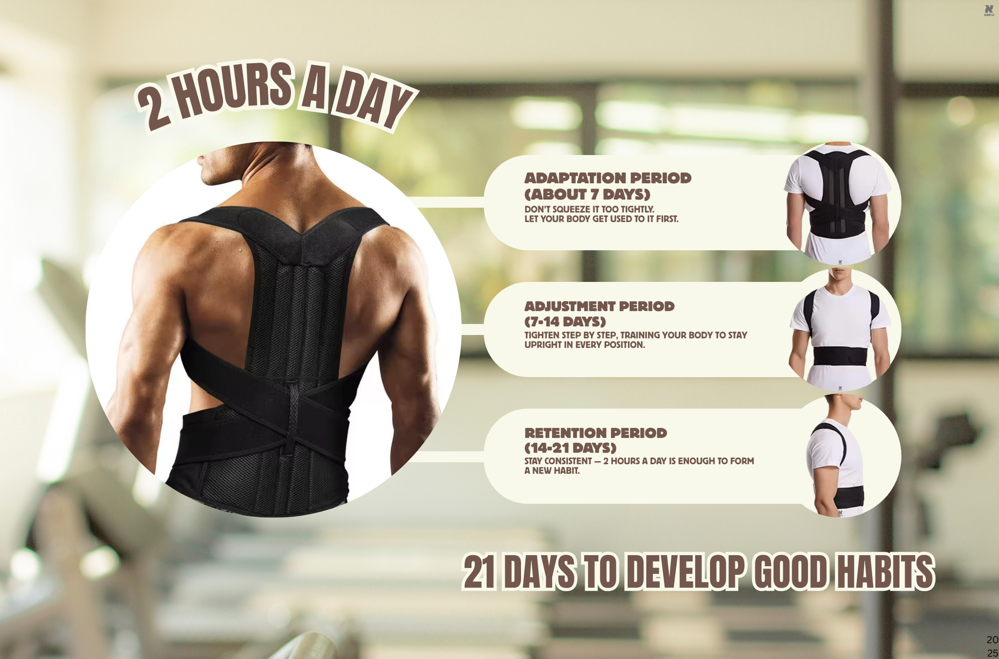 An innovative cross-strap system gently pulls your shoulders back — no force, no restriction. Over time, it builds the habit of upright posture even without the brace.